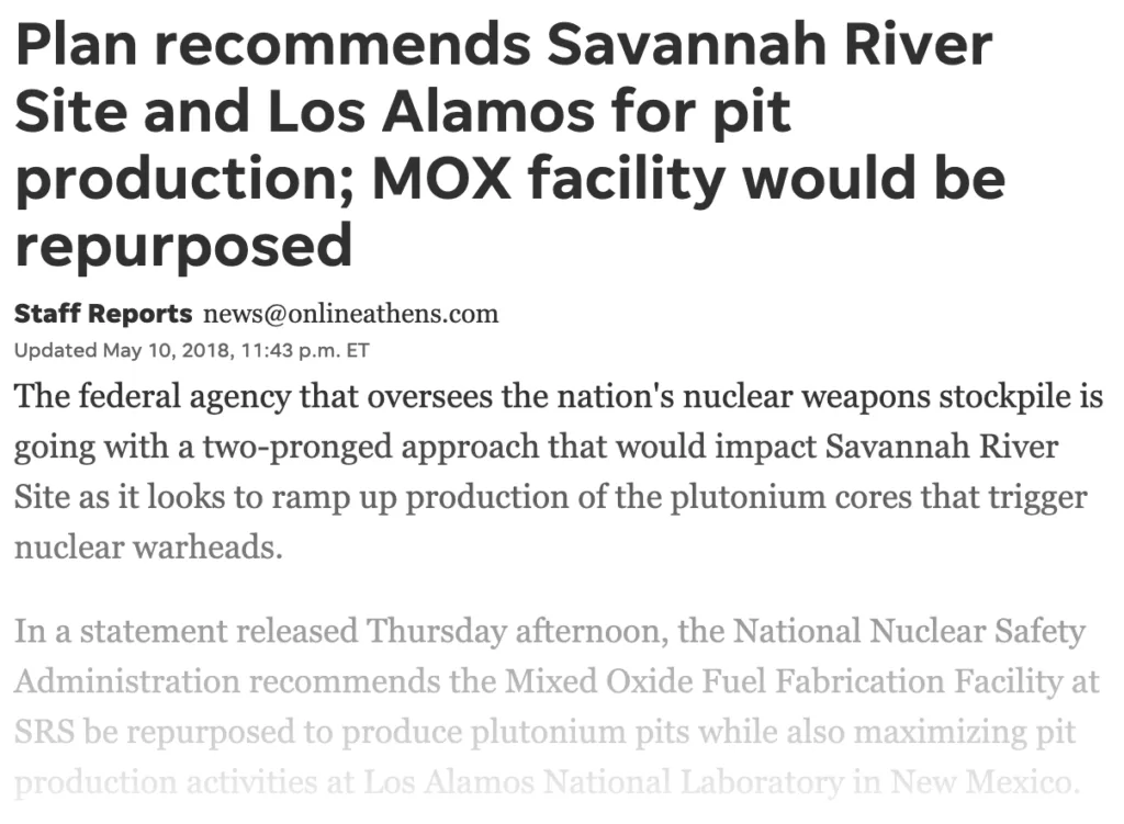 News Media on the Plutonium Pit Production PEIS