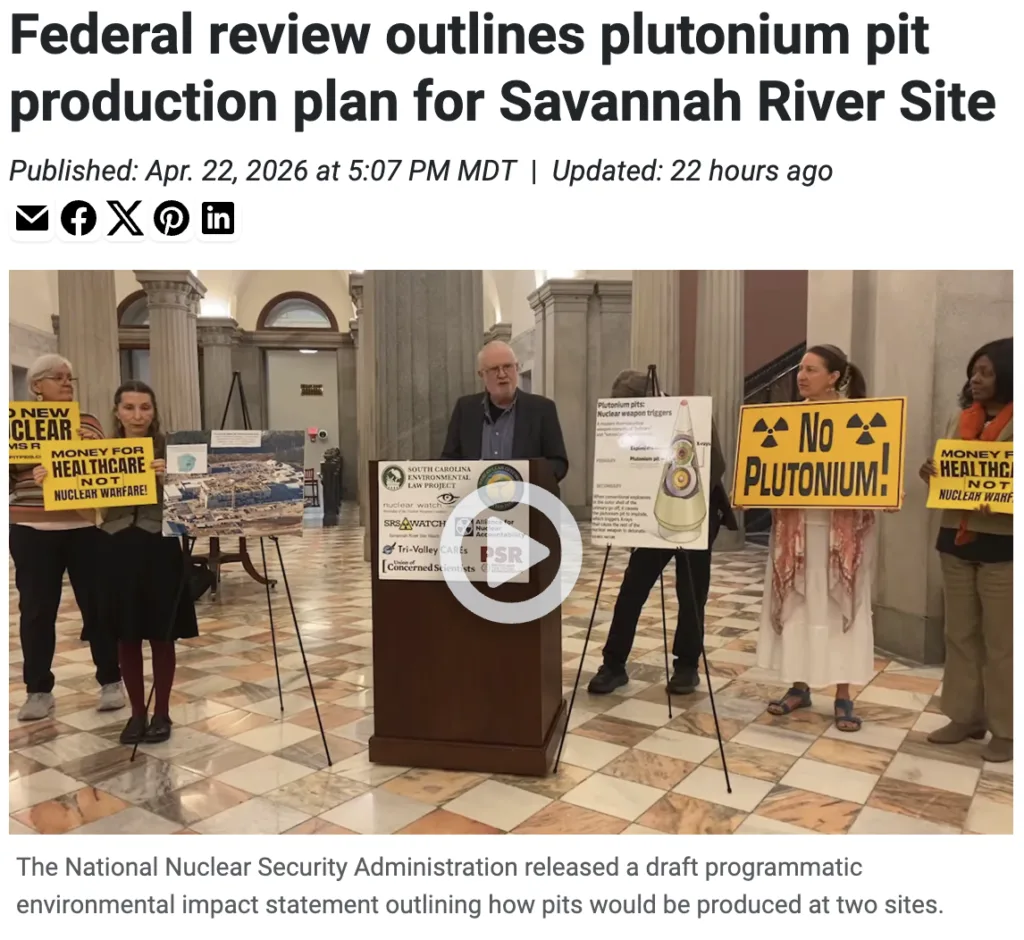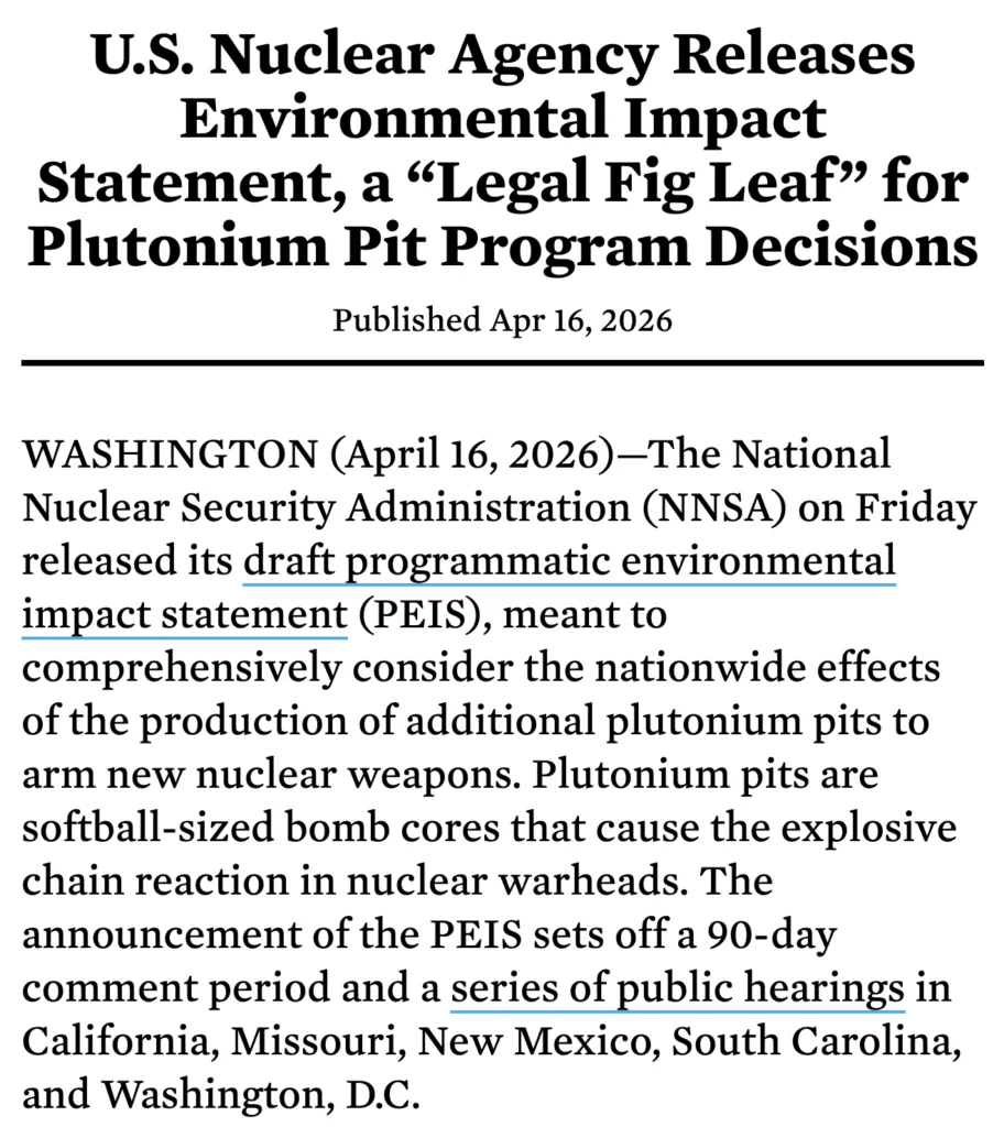 Press and Media Contact: Journalists covering the Programmatic Environmental Impact Statement (PEIS) for plutonium pit production are encouraged to get in touch for additional information and expert perspective! Click here: pitpeis.com/media-contact/
